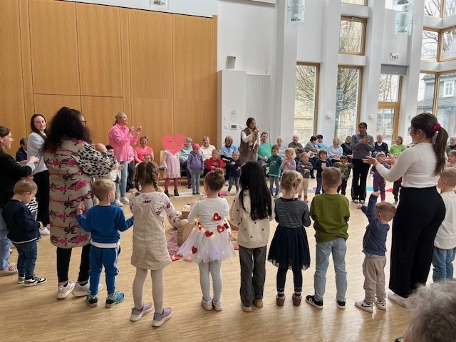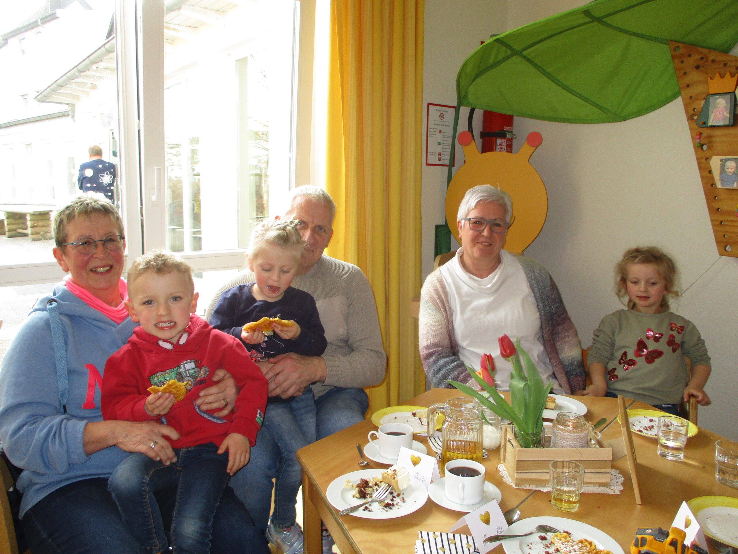 Vergangenen Freitag erlebten wir einen wundervollen Großelternnachmittag im Pfarrzentrum Brilon und anschließend in unserer Kita. Nach einer gemeinsamen Andacht zum Thema „Zeit schenken, ist Liebe zeigen“ trafen alle Großeltern und weitere Gäste mit den Kindern in den Gruppenräumen der Kita ein. An den herzlich eingedeckten Kaffeetafeln ließen sich alle den selbstgebackenen Kuchen der Großeltern schmecken.