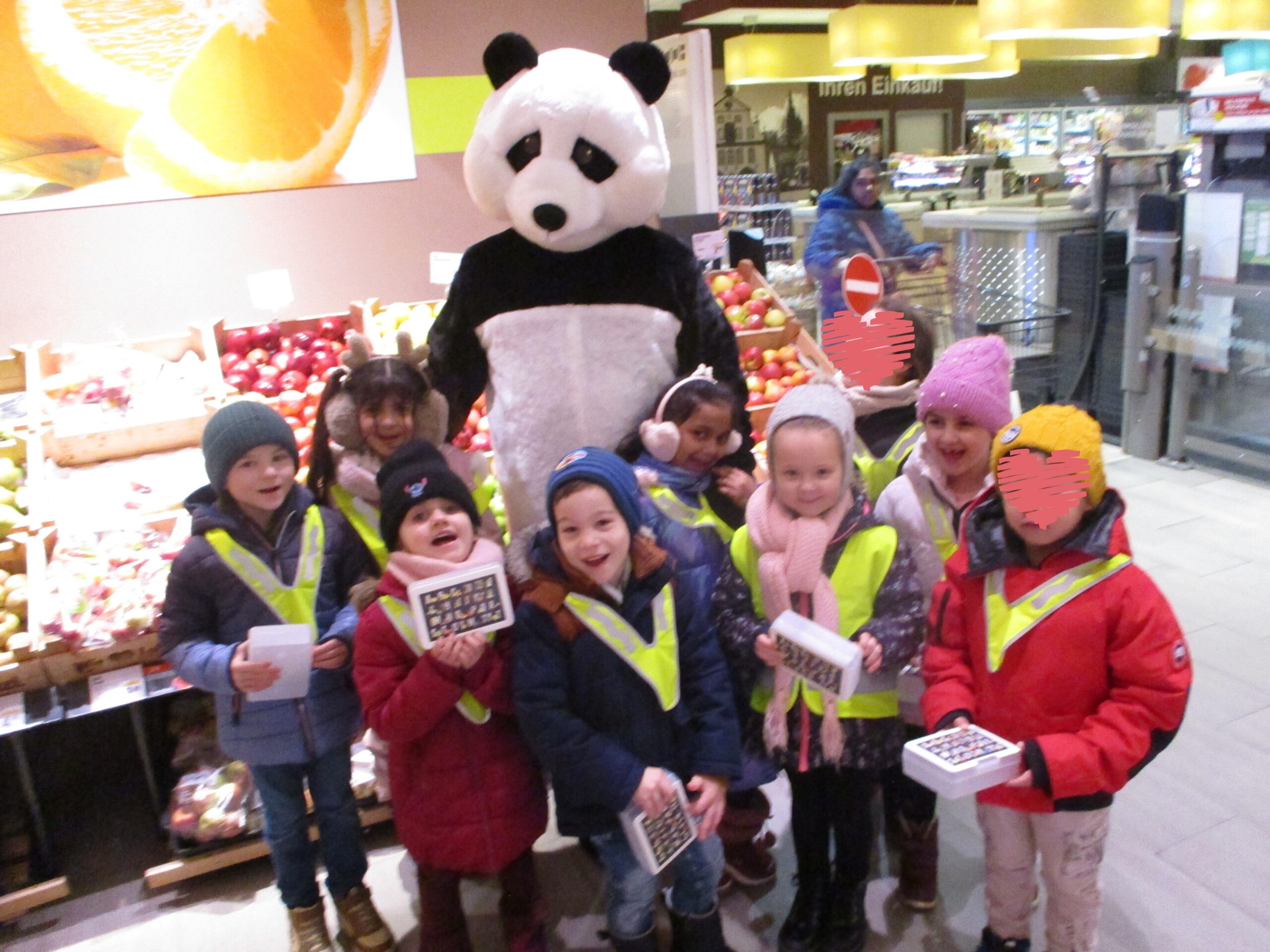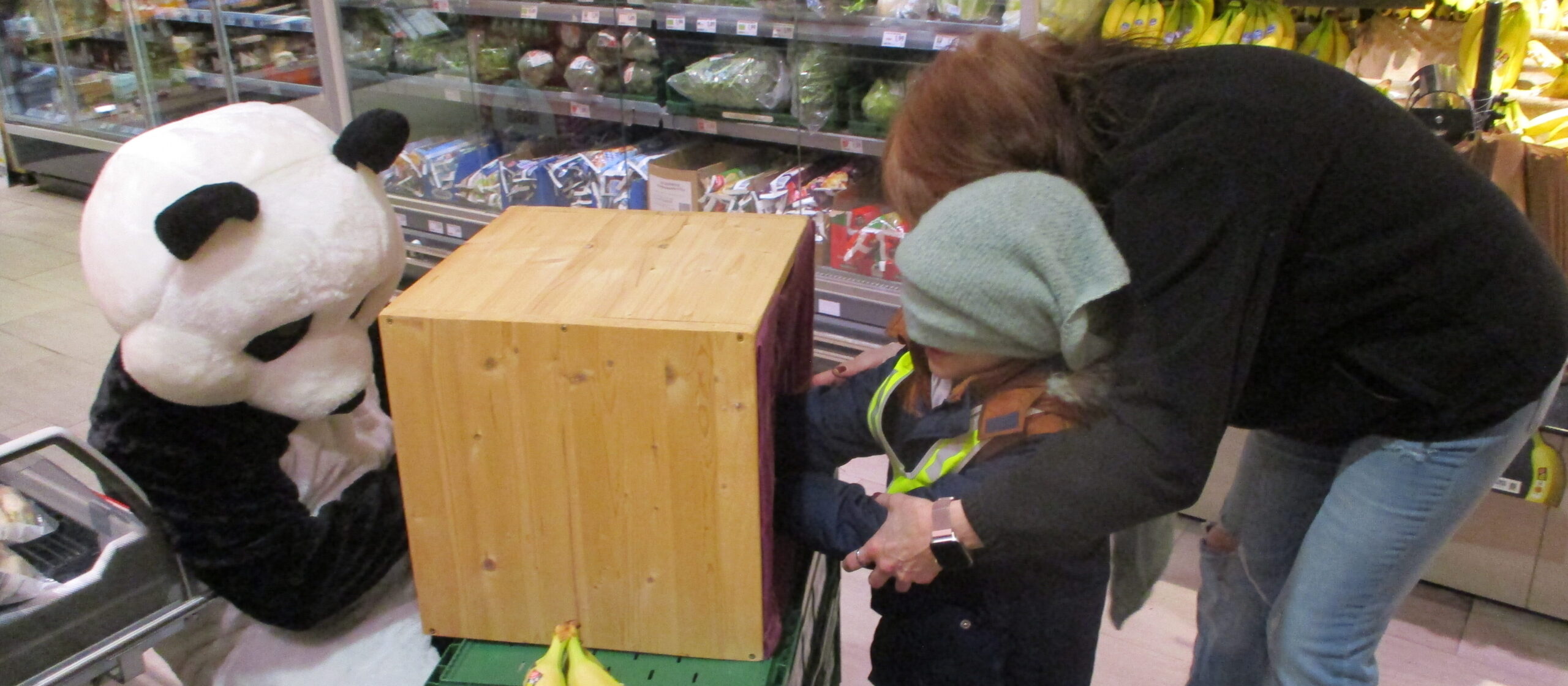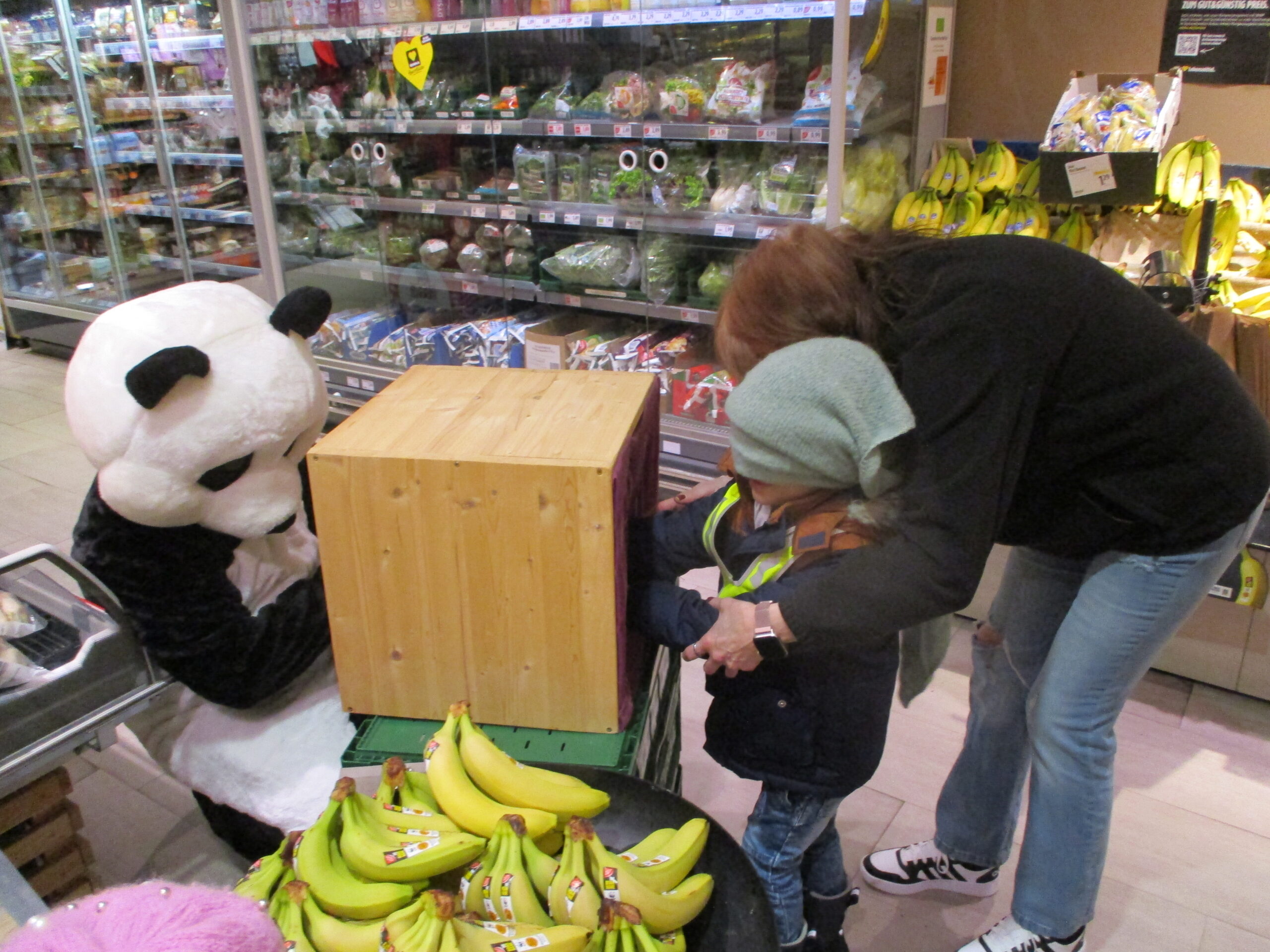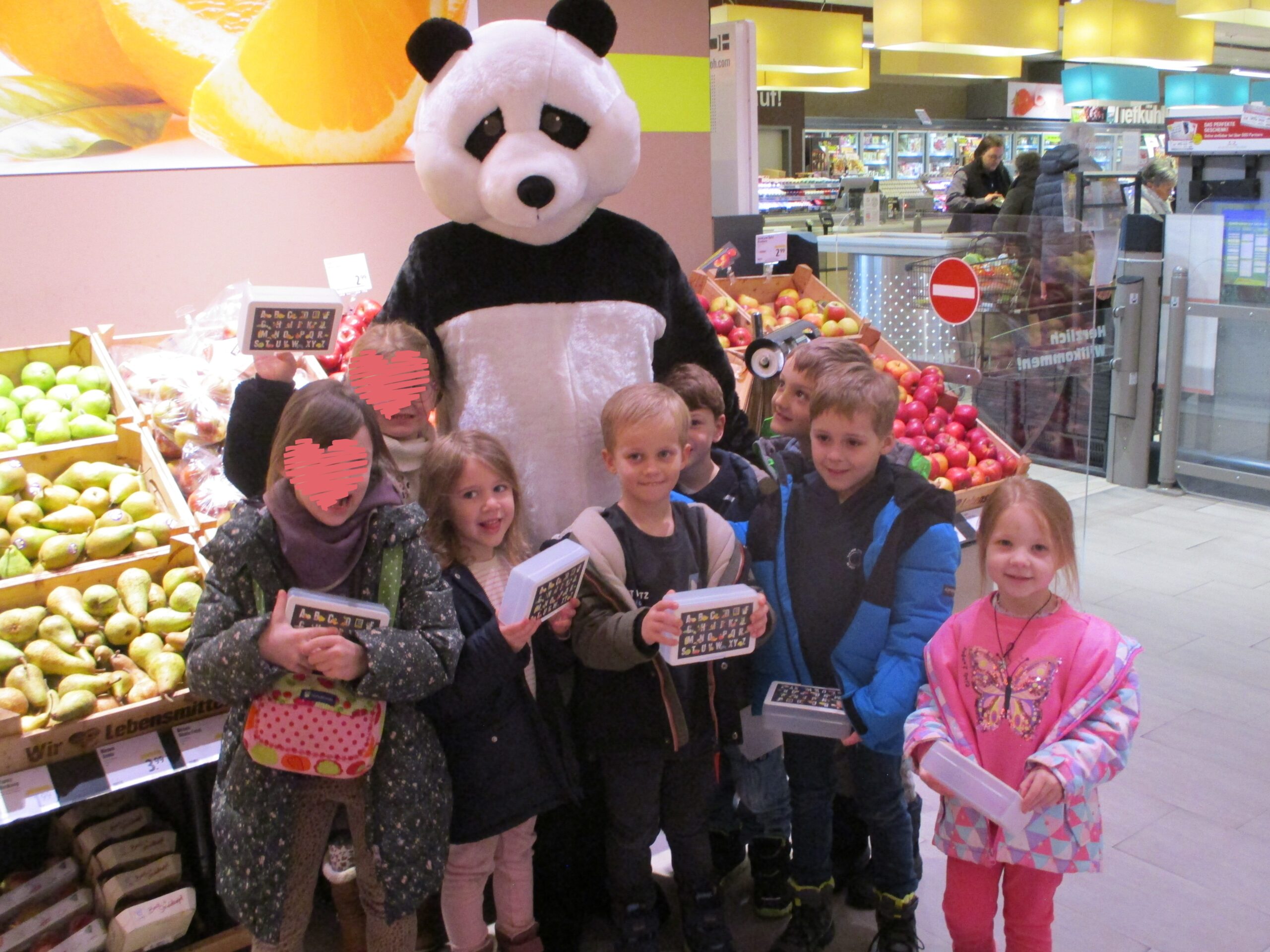 Einen tollen Besuch hatten wir diese Woche im Lebensmittelgeschäft Edeka Boxberger. Im Rahmen der Ernährungs- und Gesundheitserziehung besuchten wir den Supermarkt und wurden herzlich von allen Mitarbeitenden empfangen. So wurden wir von Oscar, den Panda durch den Laden geführt und alle Bereiche wurden uns pandastark erklärt. Das Ertasten von Obst und Gemüse hat riesen Spaß gemacht. Zur Belohnung gab es für jedes Kind eine Brotdose. WoW!